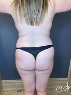 34 year old woman (no children)with breast asymmetry and diet/ exercise resistant fat deposits of the abdomen, flanks and lateral chest.
